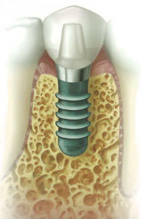 インプラントとは、あごの骨に埋め込まれる純チタン製の小さなネジです。 |