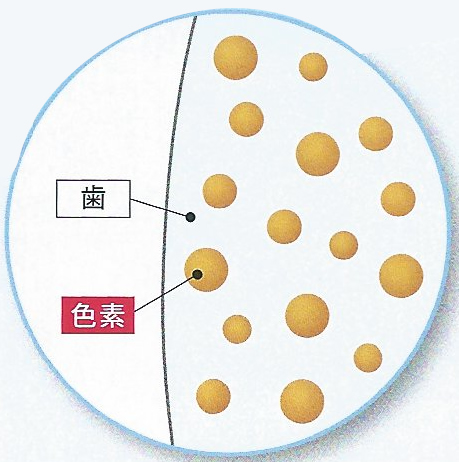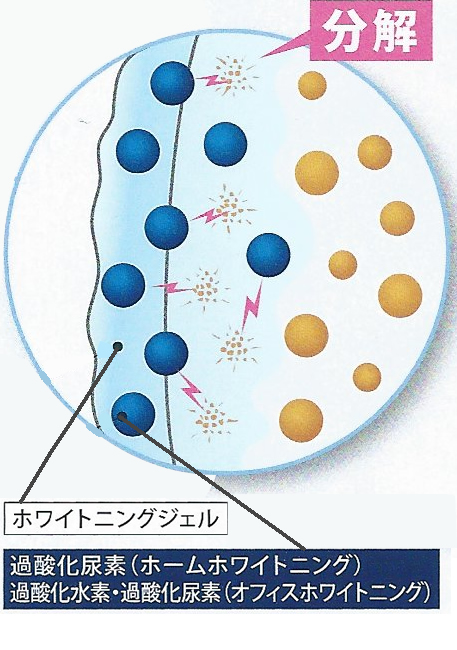 ホワイトニングジェルに含まれる過酸化水素と過酸化尿素には、歯を傷つけることなく、色素を分解する力があり、この力によって歯を白くすることができます。