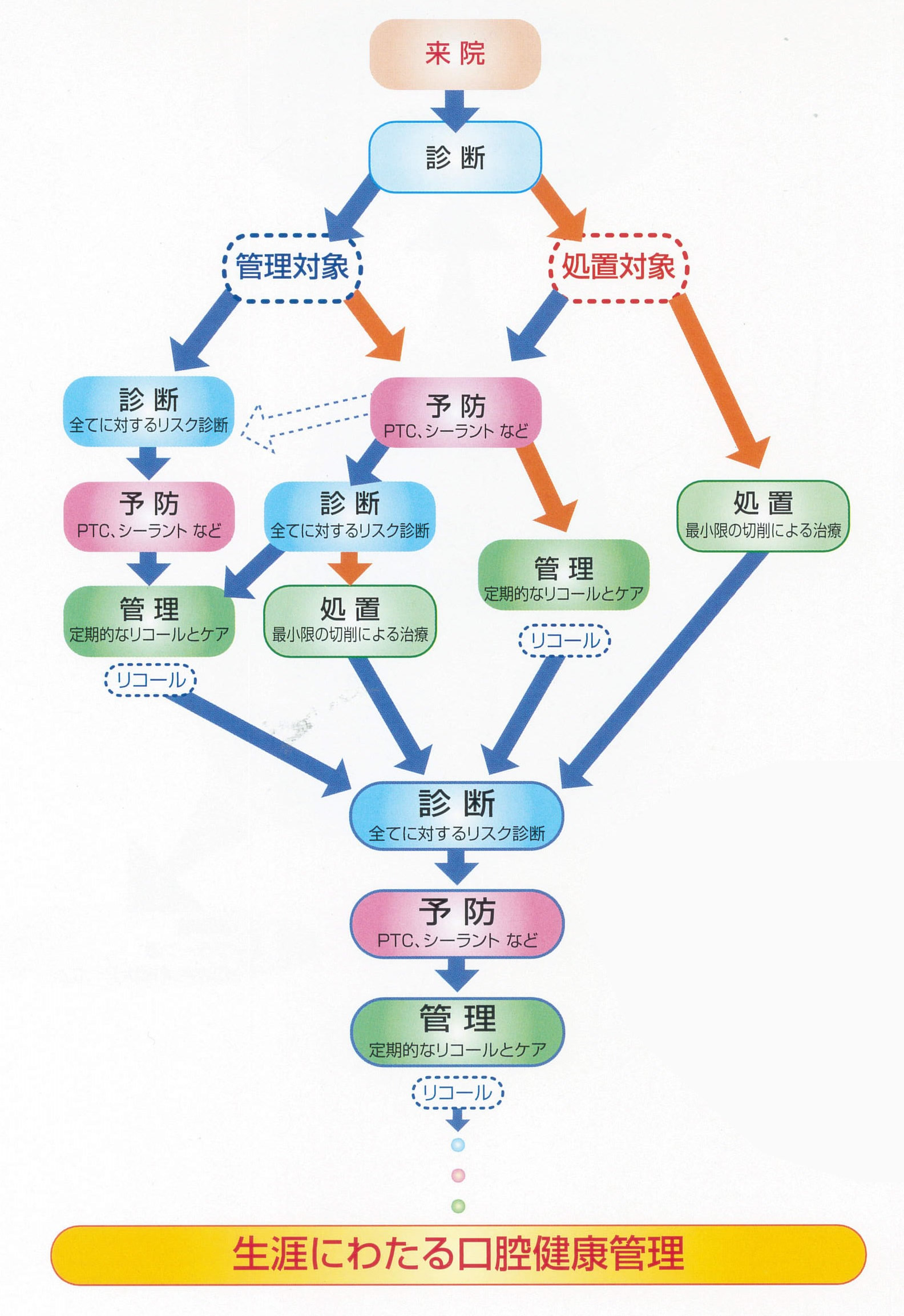 以上のことを定期的に行い(4か月から6か月毎)、最終的に“管理”中心の治療にしていくことを目標とします(半年から1年毎)。
